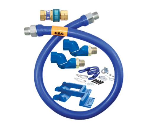 Dormont Blue Hose™ Moveable Gas Connector Hose Assembly, 1" inside dia., 36" long, covered with stainless steel braid, coated with blue antimicrobial PVC, (1) SnapFast® QD, (2) Swivel MAX®, (1) pair Safety Set® with adhesive foam tape and hardware mounting options, limited lifetime warranty