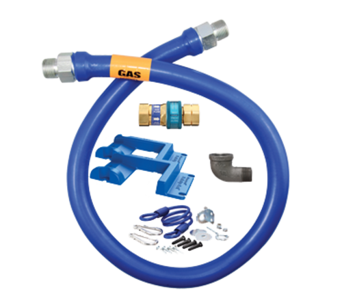 Dormont Blue Hose™ Moveable Gas Connector, 1" inside dia., 60" long, covered with stainless braid, coated with blue antimicrobial PVC, (1) SnapFast® QD, (1) elbow, (1) pair Safety Set® with adhesive foam tape and hardware mounting options, coiled restraining cable with hardware, limited lifetime warranty