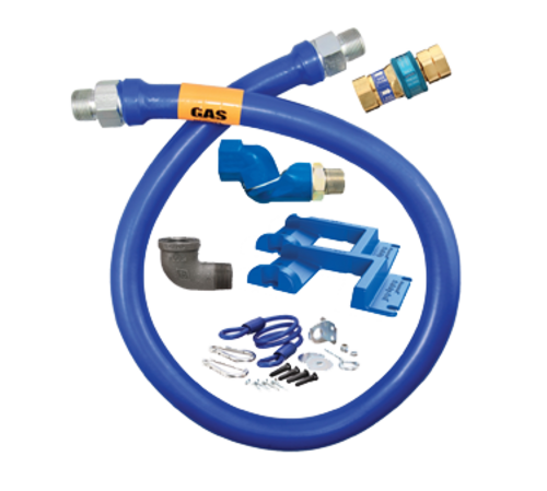 Dormont Blue Hose™ Moveable Gas Connector Hose Assembly, 1" inside dia., 36" long, covered with stainless steel braid, coated with blue antimicrobial PVC, (1) SnapFast® QD, (1) Swivel MAX®, (1) pair Safety Set® with adhesive foam tape and hardware mounting options, limited lifetime warranty