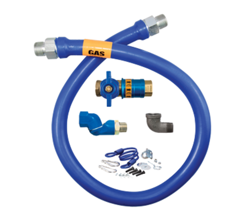 Dormont Blue Hose™ Moveable Gas Connector Kit, 1" inside dia., 72" long, covered with stainless steel braid, coated with blue antimicrobial PVC, (1) Safety Quik® QDV, (1) Swivel MAX®, and coiled restraining cable with hardware, 260,000 BTU/hr minimum flow capacity, limited lifetime warranty