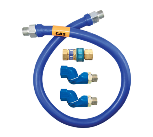Dormont Blue Hose™ Moveable Gas Connector Hose Assembly, 1-1/4" inside dia., 36" long, covered with stainless steel braid, coated with blue antimicrobial PVC, 1 SnapFast® QD, 2 Swivel MAX®, 461,000 BTU/hr minimum flow capacity, limited lifetime warranty