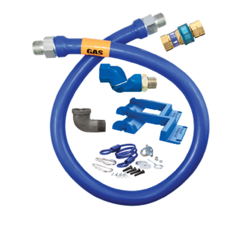 Dormont Blue Hose™ Moveable Gas Connector Hose Assembly, 1-1/4" inside dia., 48" long, covered with stainless steel braid, coated with blue antimicrobial PVC, (1) SnapFast® QD, (1) Swivel MAX®, (1) pair Safety Set® with adhesive foam tape and hardware mounting options, limited lifetime warranty