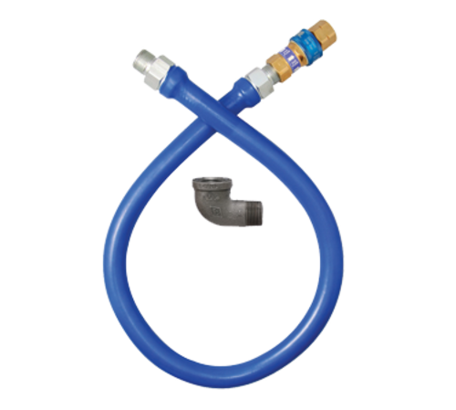 Dormont Blue Hose™ Moveable Gas Connector, 1/2" inside dia., 48" long, covered with stainless steel braid, coated with blue antimicrobial PVC, 1 SnapFast® QD, 1 elbow, 68,000 BTU/hr minimum flow capacity, limited lifetime warranty