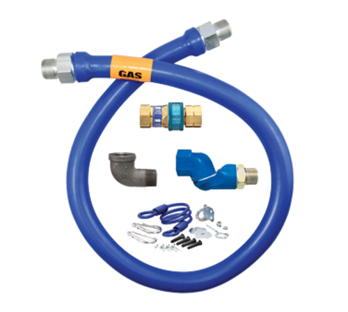 Dormont Blue Hose™ Moveable Gas Connector Hose Assembly, 1/2" inside dia., 36" long, covered with stainless steel braid, coated with blue antimicrobial PVC, (1) SnapFast® QD, (1) Swivel MAX®, coiled restraining cable with hardware, packaged in a retail box, limited lifetime warranty