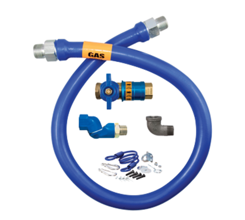 Dormont Blue Hose™ Moveable Gas Connector Kit, 1/2" inside dia., 72" long, covered with stainless steel braid, coated with blue antimicrobial PVC, (1) Safety Quik® QDV, (1) Swivel MAX®, and coiled restraining cable with hardware, 51,000 BTU/hr minimum flow capacity, limited lifetime warranty