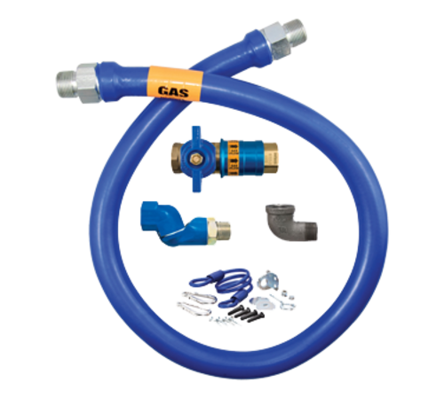 Dormont Blue Hose™ Moveable Gas Connector Kit, 3/4" inside dia., 72" long, covered with stainless steel braid, coated with blue antimicrobial PVC, (1) Safety Quik® QDV, (1) Swivel MAX®, and coiled restraining cable with hardware, 130,000 BTU/hr minimum flow capacity, limited lifetime warranty