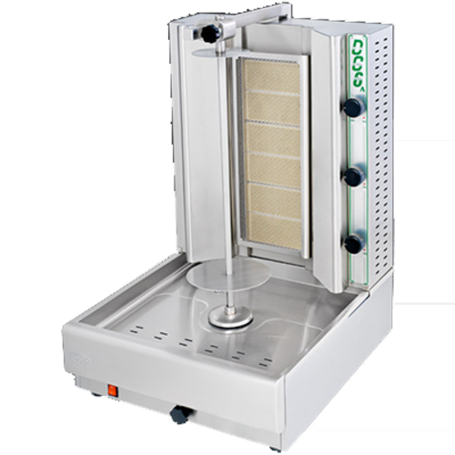 Visvardis Gyro Machine, gas, 66-100lbs capacity, moveable rear heating element, stainless steel, 110v enclosed spit motor, 36,000 BTU