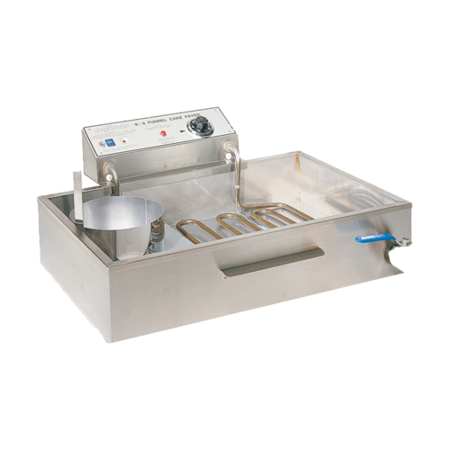 K-6 Shallow Fryer, electric, 35 lb. oil capacity, (4) 8" or (5) 6" funnel cake capacity, tubular heat element with dial control, removable powerhead, emergency stop button, safety drain plug, stainless steel construction, 6500 watts, 230v/60/1-ph, NEMA 6-50P, UL, NSF
