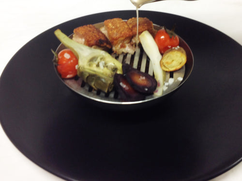 Table Grill, 5-7/8" dia., round, with natural stones, dishwasher safe, 18/10 stainless steel