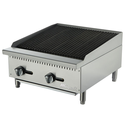 Competitor Series® Charbroiler, countertop, natural gas, 24" W, lava rock over cast iron radiants, 24" x 20" cooking surface, (2) 35,000 BTU "U" shaped burners, manual controls, removable grease trough, stainless steel exterior, (4) adjustable stainless steel feet, 70,000 BTU total (configured for Natural Gas, LP Conversion Kit included), cETLus, ETL-Sanitation, Migali® Plant-A-Tree Pledge: Migali® pledges to plant a tree for every product sold in partnership with the Earth Day Network