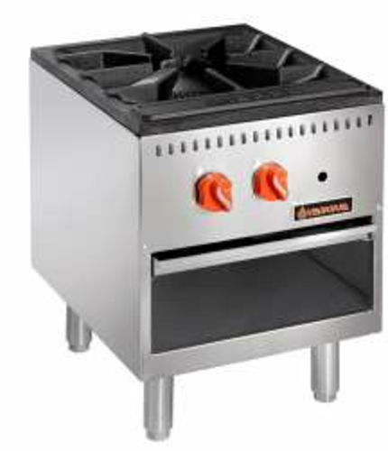 Sierra Stock Pot Range, natural gas, 18"W, (1) three-ring burner, (2) manual controls (inner & outer ring), cast iron grate, removable drip tray, lower storage shelf, stainless steel construction, (4) adjustable legs, pressure regulator, 90,000 BTU total, cETLus, ETL-Sanitation (ships with LP conversion kit)