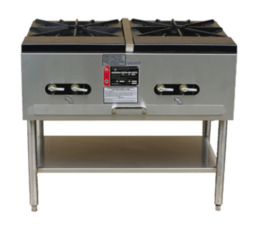 Double Stock Pot Stove, 38"W x 24-1/2"D x 18"H, cast iron grate top, (3) ring burner, 274,000 BTU, 1-1/4" connection