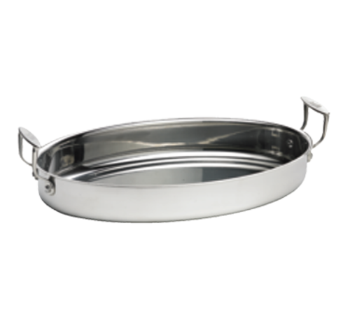 Pan Server, 5-1/2 qt., 16-3/4" x 10-7/8" x 2-1/2", oval, with 2 handles, 3-ply, safe for stove top, hot plate, gas, steam, induction and oven safe up to 500°F, dishwasher safe, coated aluminum & stainless steel, NSF (1 each minimum order)