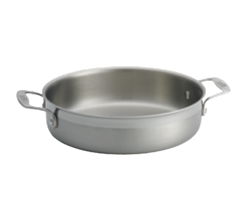 Brazier Pan, 3 qt., 10" dia. x 2-1/2"H, (2) loop handles, tri-ply, safe for stove top, hot plate, gas, steam, induction and oven safe up to 500°F, dishwasher safe, coated aluminum & stainless steel, NSF (1 each minimum order)