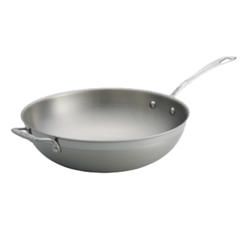 Induction Wok, 5 qt., 11-3/4" dia. x 3-1/4", round, with long handle & helper handle, tri-ply, safe for stove top, hot plate, gas, steam, induction and oven use, dishwasher safe, coated aluminum & stainless steel, NSF (1 each minimum order)