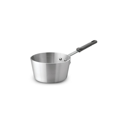 Professional Restaurant Sauce Pan, 2-3/4 qt., riveted handle, grey soft-grip silicone handle, oven safe up to 400°F, compatible with gas, electric, and ceramic glass cooktops, dishwasher safe, uncoated, 3.2mm heavy gauge aluminum alloy, starburst satin finish, NSF, Made in Brazil (4 each per case)