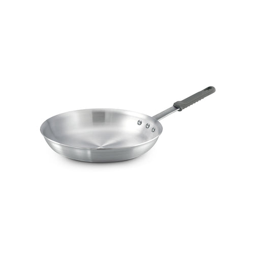Professional Restaurant Fry Pan, 12" dia., riveted handle, grey soft-grip silicone handle, oven safe up to 400°F, compatible with gas, electric, and ceramic glass cooktops, dishwasher safe, uncoated, 3.6mm heavy gauge aluminum alloy, starburst satin finish, NSF, Made in Brazil (4 each per case)