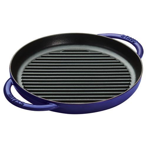 Staub® Pure Grill, 10" dia. (13.5" x 10.5" x 1.5" O.A.), round, with handles, dishwasher safe, oven safe up to 572°F, safe for most heat sources including induction, enameled cast iron, dark blue (Special Promo NET Price) (contact factory for price)