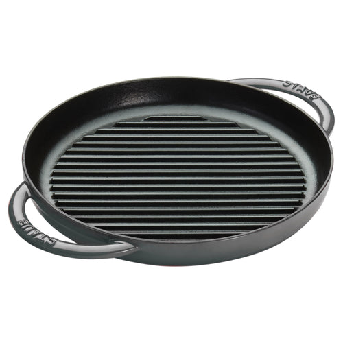 Staub® Pure Grill, 10" dia. (13.5" x 10.5" x 1.5" O.A.), round, with handles, dishwasher safe, oven safe up to 572°F, safe for most heat sources including induction, enameled cast iron, graphite grey (Special Promo NET Price) (contact factory for price)