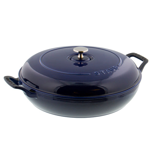 Staub® Braiser Pan, 3-1/2 qt., 15-2/5"W x 12"D x 5"H, with dome lid, dishwasher safe, oven safe up to 572°F, safe for most heat sources including induction, enameled cast iron, dark blue (contact factory for price)