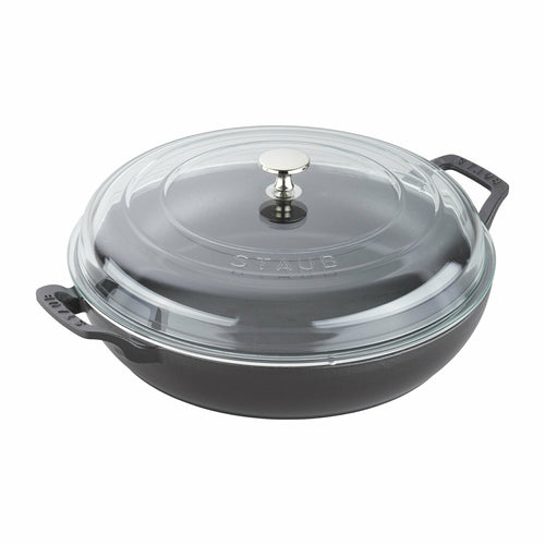 Staub® Brazier, 3-1/2 qt., with glass lid, safe for most heat sources including induction, enameled finish, matte black (Special Promo NET Price) (contact factory for price)