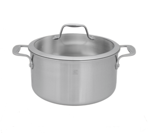 Zwilling® Spirit Stock Pot, 6 qt., 9-1/2" dia. x 7"H, with tempered glass lid, flared rim, stay cool handle, fully clad 3-ply from rim-to-rim, 3mm thick, aluminum core, dishwasher safe, oven safe up to 500°F (tempered glass lid oven safe up to 400°F) safe for most heat sources including induction, polished 18/10 stainless steel (contact factory for price)