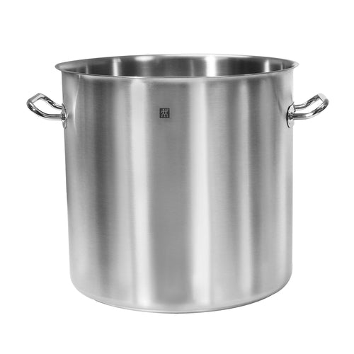 Zwilling® Stock Pot, 38 qt., 14" dia. x 14-1/5"H, 3-ply, aluminum core, welded stay-cool handles, flared no-drip rim, dishwasher safe, oven safe up to 500°F, safe for most heat sources including induction, 18/10 stainless steel, satin finish, NSF certified (contact factory for price)