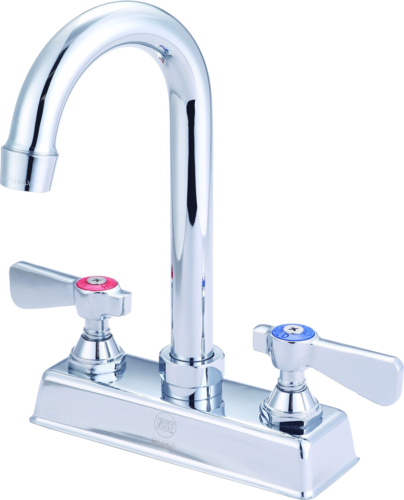 Sink Faucet, deck mount, 4" fixed centers, lever handles with hot and cold indicators, 3-1/2" gooseneck spout, lead free, stainless steel, chrome finish