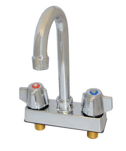 TOP-LINE® Economy Hand Sink Faucet, deck mount, 4" OC, knob handles, 3-1/2" swivel gooseneck spout, polished chrome plated plastic, double o-ring spout, 2.0 gpm aerator with full flow stream bubbler, includes: plastic gasket & locking nuts, ADA