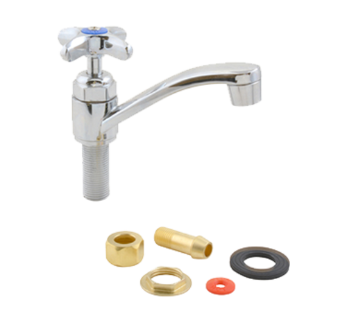Faucet, deck mount, swivel, 2.0 gpm, 4-1/2" spout, includes cold & hot buttons, mounting nut & mounting washer, chrome-plated brass, NSF