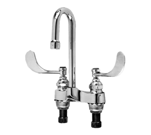 Faucet, lavatory, deck mount, 4" centers, 10" rigid gooseneck spout, 2-3/4" spread, 2-1/4" shanks, 4" wrist blades, 2.2 gpm, 1/2" adaptor nuts, chrome-plated brass, lead free