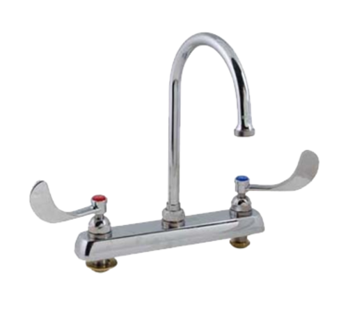 1100 Series Faucet, deck mounted, 8" centers, gooseneck, 5-3/4" spread, wrist blade handles, 1/2" NPS, chrome-plated brass, lead free