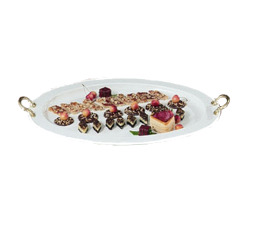Serving Tray, 18" x 24-3/4", oval, with 4 brass handles and legs, ceramic-look coating, Sandstone, Tangerine