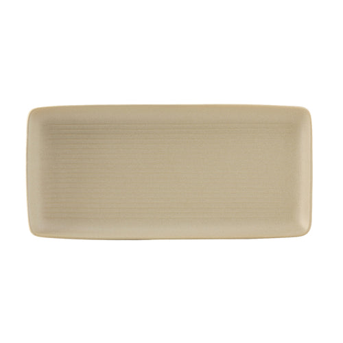 Tray, 14" x 6-5/8" x 1-1/8"H, rectangular, embossed, microwave & dishwasher safe, oven proof, fully vitrified, lead-free, porcelain, TuxTrendz®©, Zion, matte beige