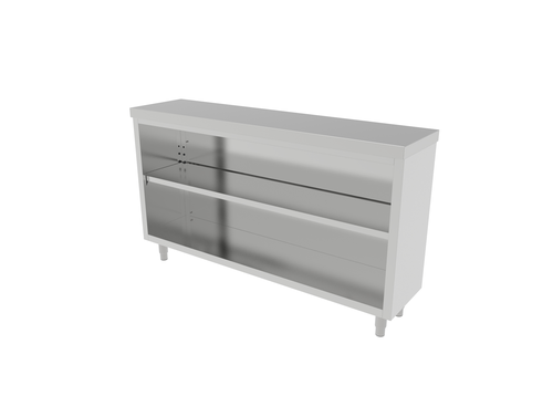 Dish Cabinet, 15"W x 60"L x 35"H, 18/430 stainless steel top, (2) under shelves, stainless steel construction, NSF