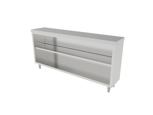 Dish Cabinet, 15"W x 72"L x 35"H, 18/430 stainless steel top, (2) under shelves, stainless steel construction, NSF