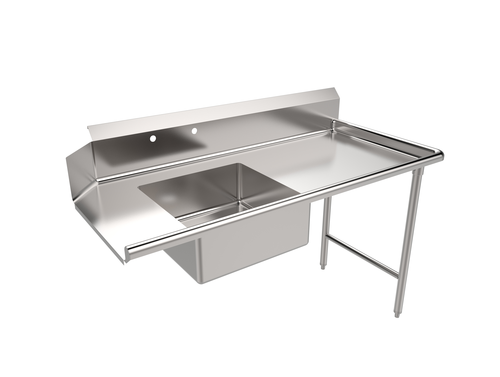 Soiled Dishtable, straight design, right-to-left operation, 60"W x 30"D x 34"H, 9"H backsplash, 8" OC splash mount faucet holes, 20"W x 20"D x 8"deep pre-rinse sink bowl, stainless steel legs & cross-braces, 16 gauge, 304 stainless steel construction, NSF