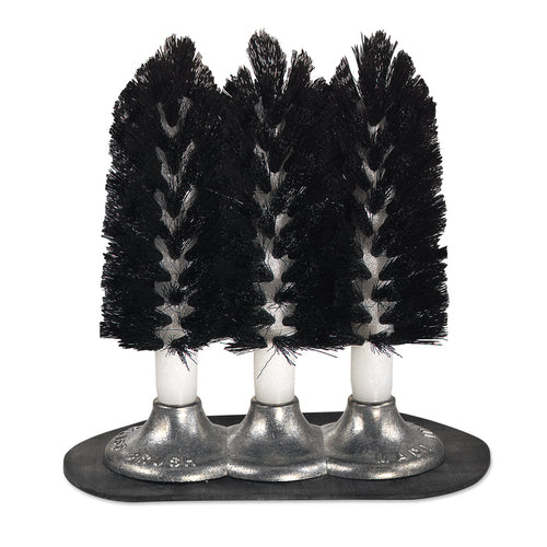 Glass Brush, 8-1/2", triple head, suction base, black nylon brushes