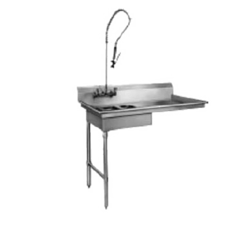 Soiled Dishtable, undercounter, 48"W x 29"D x 42-3/4"H, 16/304 stainless steel top, 8"H backsplash, 20" x 20" x 5" deep pre-rinse sink on left, 8" OC splash mount faucet holes, 2" basket drain, raised rolled edges on front & sides, stainless steel legs & adjustable side bracing, NSF