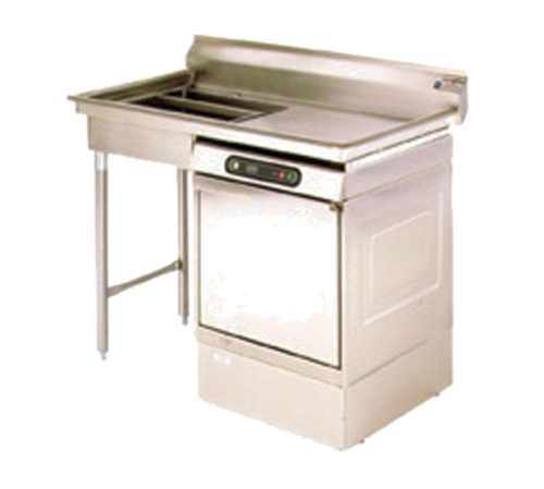 Soiled Dishtable, undercounter, dishwasher on right, 60"W x 27-1/2"D x 43-1/2"H overall, 16/304 stainless steel top, 20" x 20" x 5" pre-rinse sink includes basket drain with removable crumb cup, 8"H backsplash, single deck mount faucet hole for pre-rinse, raised rolled rims on front & sides, accommodates 24" (front-to-back) undercounter dishwasher, galvanized legs & crossrails with adjustable plastic bullet feet, NSF (FLYER)