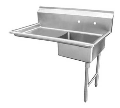 Dishtable, undercounter design, 48"L x 30"D x 34"H, with left drainboard, 11-1/2" backsplash, (1) 20"W x 20"D x 6" deep pre-rinse sink bowl (right), polished 16/304 stainless steel top & bowl, stainless steel cross braced legs, ETL