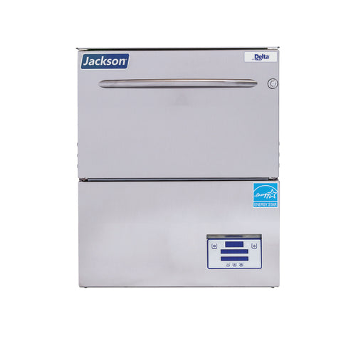 Delta® Dish/Glasswasher, door type, 24-1/4"W x 26-7/8"D x 28-3/4"H, high temperature sanitizing, built-in booster with Sani-Sure™ final rise system, steam elimination & energy recovery system, approximately (24) racks or (864) glasses/hour, built-in dispensing pumps & priming switches, delime cycle, digital LED display, solid state controls, auto-fill, push-button start, pressure regulator, automatic pumped drain, water hammer arrestor, includes (1) peg rack & (1) combination rack, stainless steel construction, cETLus, ETL-Sanitation
