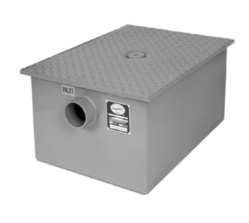 Grease Interceptor, 20 gallons per minute flow rate, 40 lb. grease capacity, 3-1/2" inlet & outlet, fabricated steel with epoxy coating, PDI certified