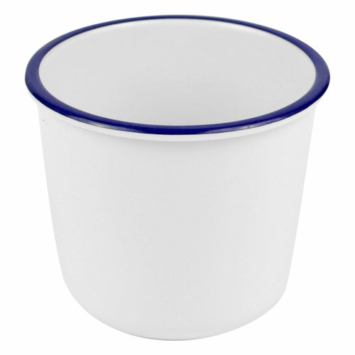Enamelware Collection French Fry Pot, 13-1/2 oz., 4" dia. x 3-1/4"H, round, blue rim, anti-slip silicone feet, chip and stain resistant, dishwasher safe, melamine, white, Dalebrook