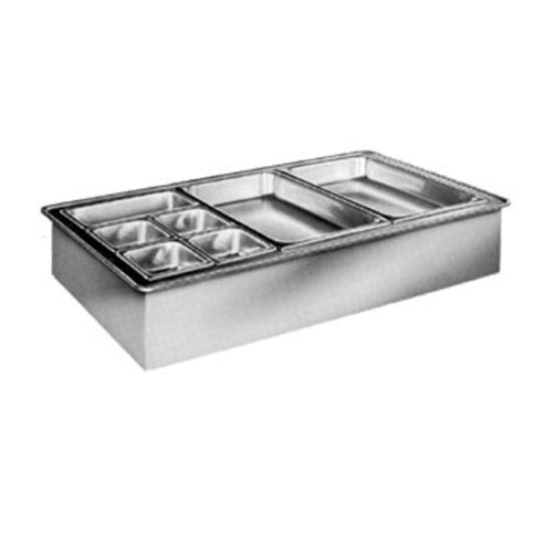 Cold Food Drop-In Unit, iced cold pan, deep design, 5-pan size, insulated pan, stainless steel inner liner & top, galvanized steel outer liner, 19-7/8" x 66-3/4" x 9-3/4" pan size, 3/4" drain with strainer