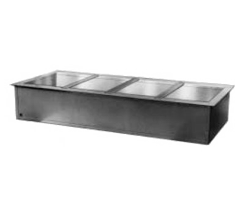 Drop-In Cold Food Pan, iced cold pan, 32"W x 24"D x 6-1/4"H, accommodates (2) 4" deep 12" x 20" pans, 300 series stainless steel top with overhang, 5" deep 300 series stainless steel interior liner, steel exterior housing, (1) adapter bar included, 1" brass drain & plug, NSF (31"W x 23"D cutout required for unit)