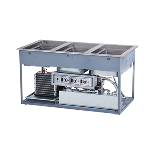 Hot/Cold Dual Operation Drop-In Serving Counter, 48-7/16"W x 25-5/16"D x 29-1/2"H, 3-wells each accommodate (1) 12" x 20" pan, independent temperature controls, 3-way temp conversion switch per well (HOT/COLD/OFF), (3) pan lifting rings, stainless steel construction, side-mount self-contained refrigeration, adjustable leveling feet, (46-7/16" x 24-7/16" cutout required), cETLus, ETL-Sanitation (contact factory for price)