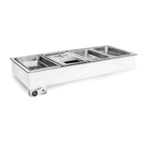 Hot Food Drop-In Well Unit, electric, 5-pan size, bain-marie or individual pan, wet type, holds (5) 12" x 20" pans, control panel with single thermostatic control, stainless steel top & inner liner, galvanized outer liner, with fiberglass insulation, UL, ETL-Sanitation