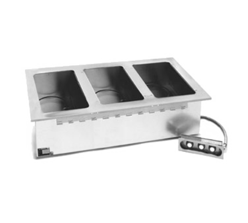 Drop-in Hot Food Well Unit, electric, dry operation, 46-1/8"W x 23-5/16"D cutout required for unit, (3) 12" x 20"Wells, 22/430 stainless steel top, 20 gauge galvanized body, (3) 750W exposed heating elements, fiberglass insulation on all sides, 11-13/16"W x 2-11/16"H cutout required for control panel, infinite controls, control panel includes 20" flexible conduit, 2250W, 10.8 amps, 208v/60/1-ph, NSF