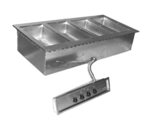 Hot Food Well Unit, Drop-in, electric, (4) 12" x 20" individual pan design, wet or dry type, with drain, control panel with individual thermostat controls, stainless steel top, galvanized body with fiberglass insulation, 240v/60/1-ph, 6400W, 26.7 amps, NSF, cULus